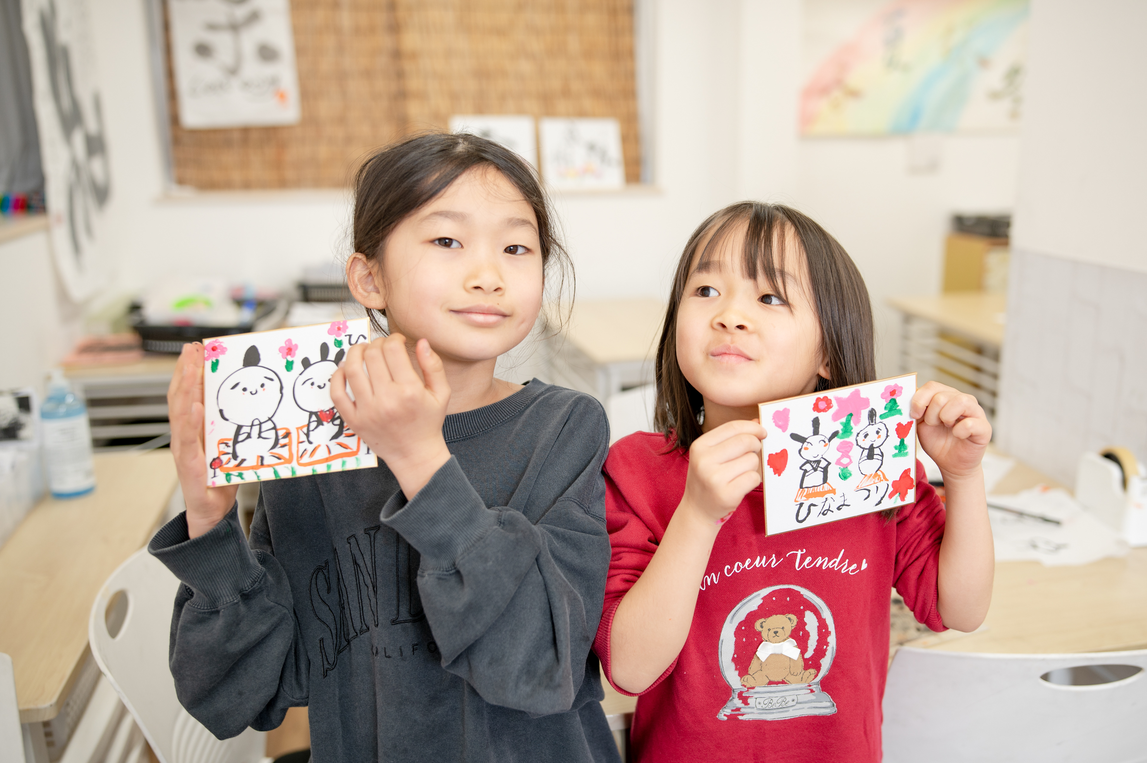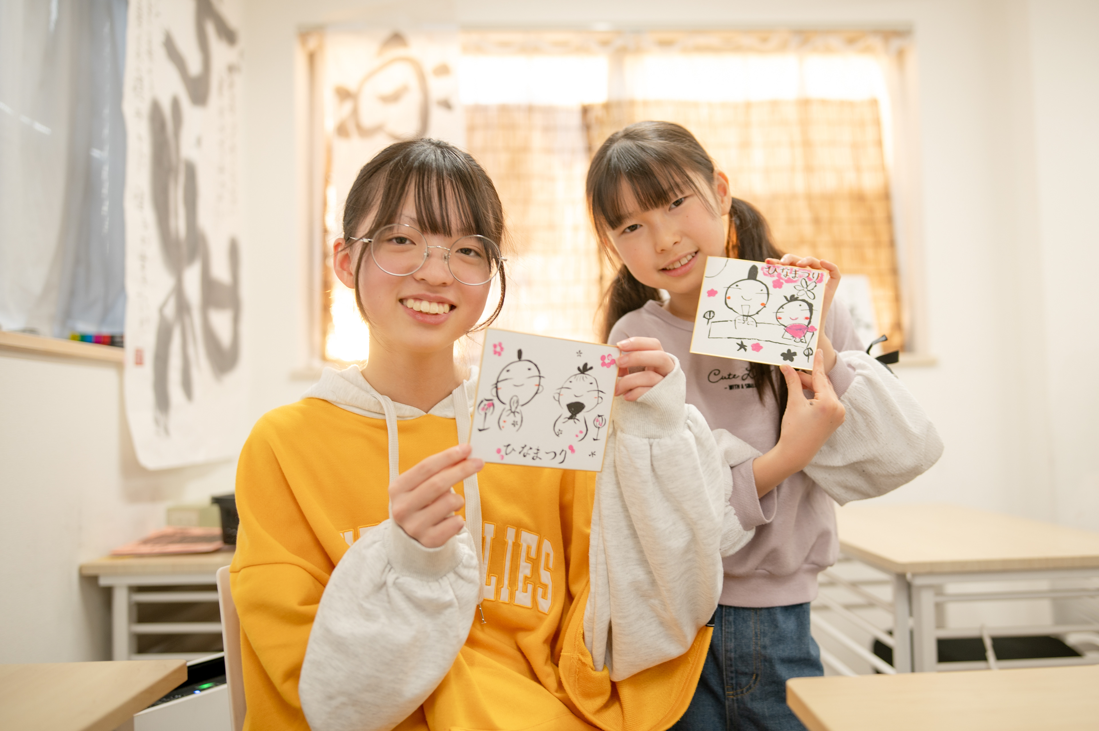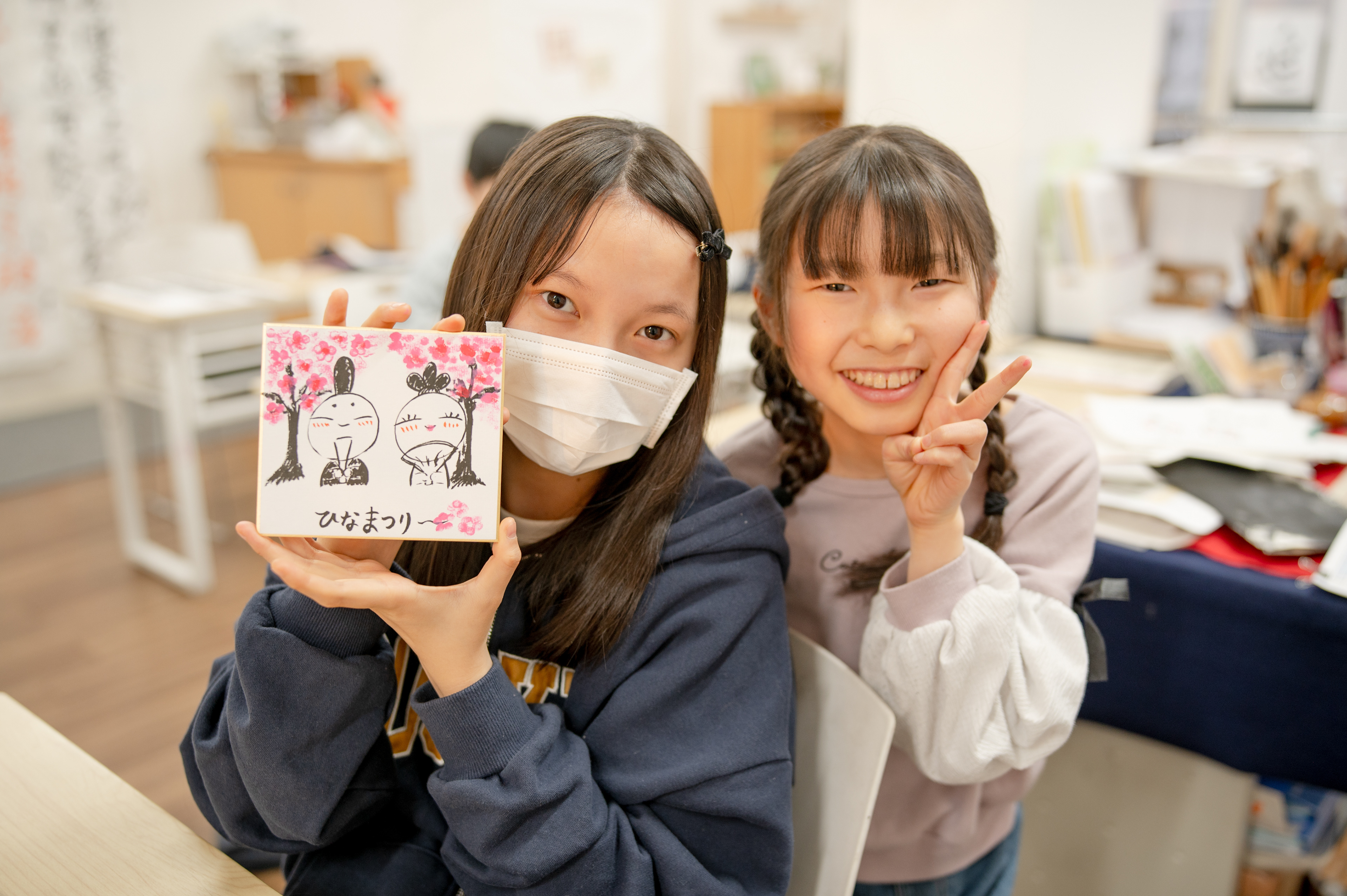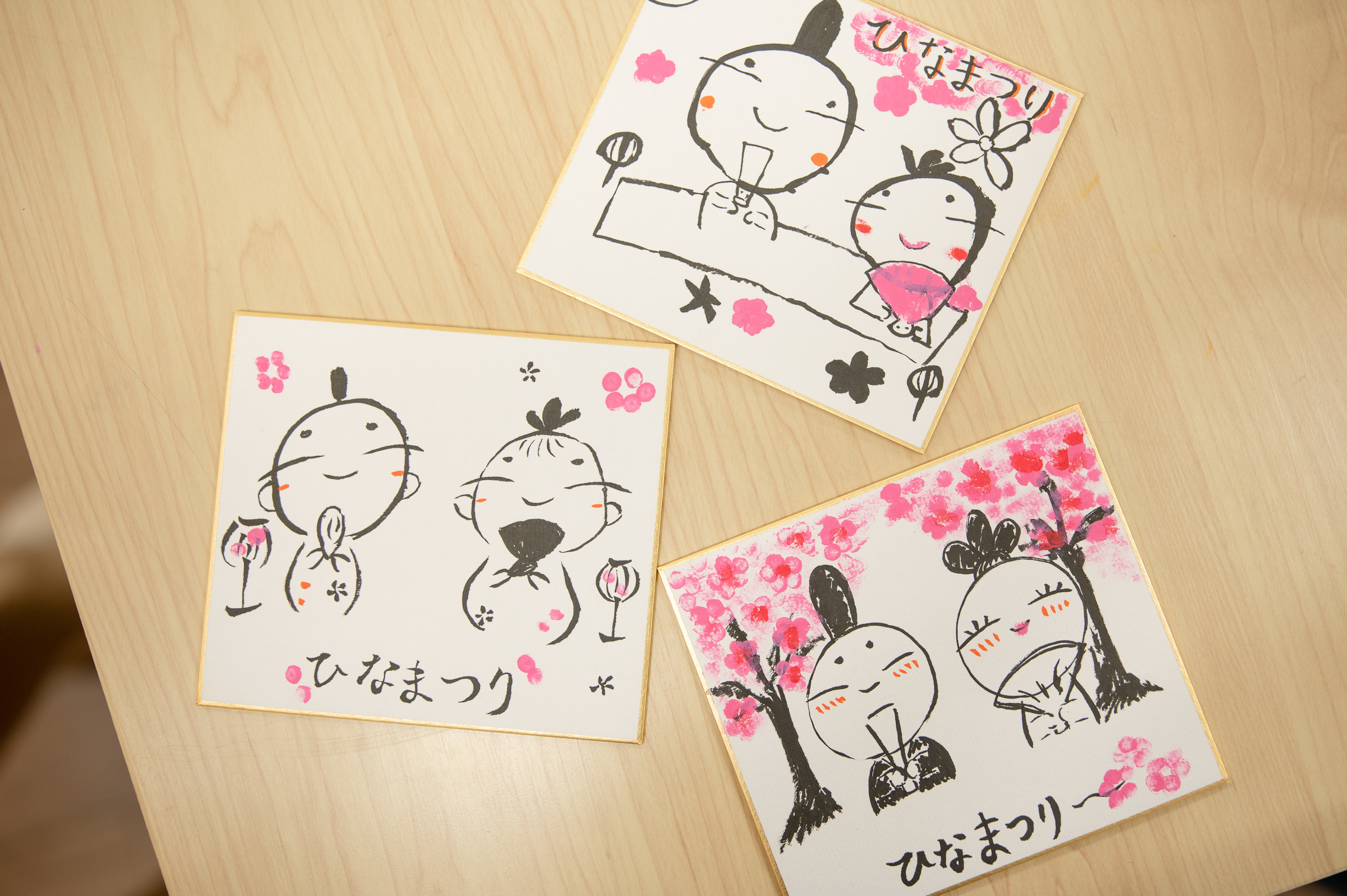 まもなくひな祭り...ということで、お稽古終わりにお雛さんを書いてみました!みなさん、どれも可愛くかけましたね。