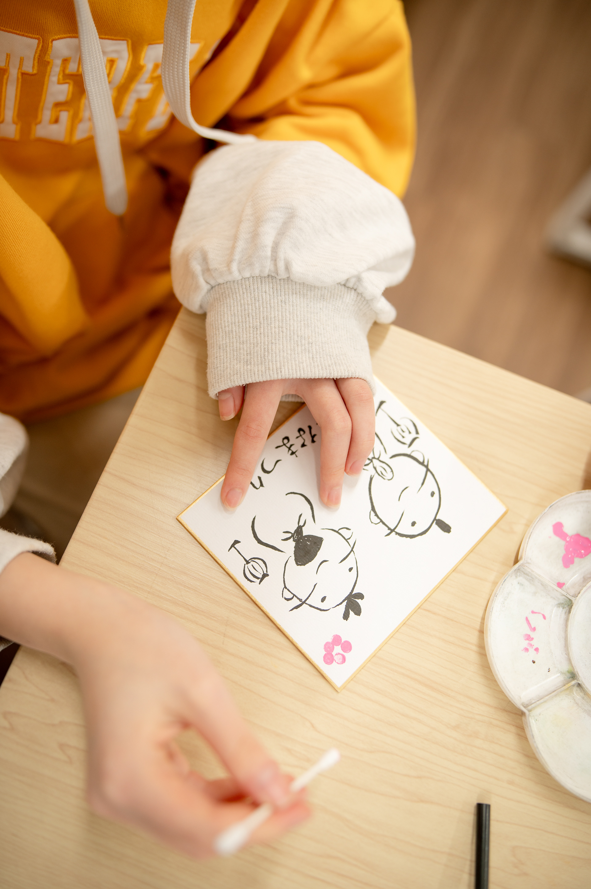 色々なデザインのキャンバスボードの上にラメを混ぜた墨でお好きな文字を書いてくださいね。