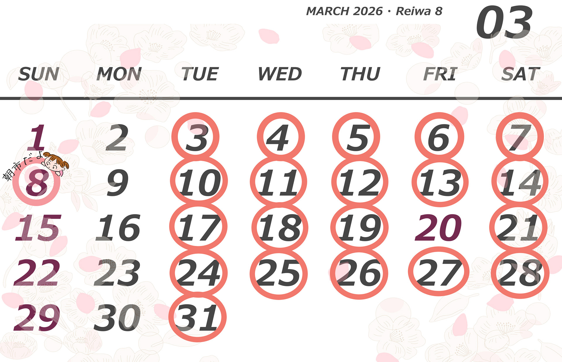 開催時間 R8 3月8日(日) 8:00-12:00